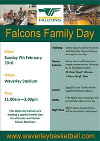 The Falcons Family Day is on this Sunday, February 7 at Waverley Stadium. This is a great event for the Falcons program, bringing the Junior and Senior programs together as one family.