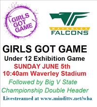 The game has become a yearly fixture with young players from the Falcons junior girls program given the chance to play in a senior game environment with all the bells and whistles of a Big V game.
