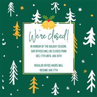 Our office will be closed from 17th December until 16th January. Our office will re-open on the 17th January.