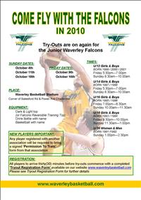 The Waverley Falcons Junior Try-Out Dates have been confirmed.