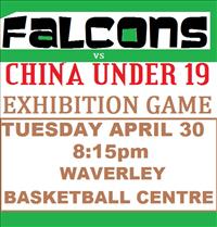 The Waverley Falcons Big V Championship Men's Team will be taking on a travelling Chinese Under 19 Representative team.