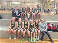 Falcons 12-3 girls were delighted to join in a mixed Falcons under 12 team with representatives from the development squad and a special guest from the 12-1 team. Georgie, Gen, Ella and Ashley welcomed Annie, Jas, Mia and Olivia K from the development group. They were ably assisted by Chelsea from 12-1 Falcons, showing her skills and style. Assistant coach Sophie (out injured) helped coach Andrew (Drew) Kelly guide the team through the tough matches. The team faced opposition from Friday night teams who are playing a grade level above in the regular competition, sometimes two.