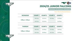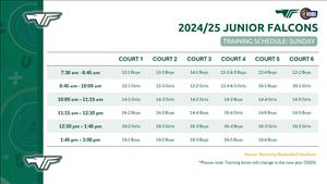 Our Junior Falcons Representative Training is Schedule is now available (see below) - Venue: Waverley Basketball Stadium