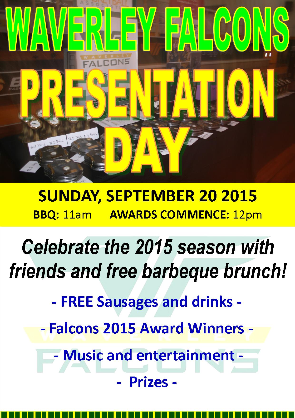 The end of the Falcons 2015 VJBL season will once again be cause for celebration at the Waverley Falcons Presentation Day.