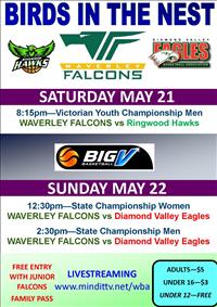 On Sunday our Champ teams step out on the floor for a Double Header with the Diamond Valley Eagles. The Falcons split their Double Header with Eltham last week; the women recording a strong win while the men fell short.