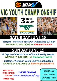 The weekend wraps up with the Victrorian Youth Championship Men hosting the Sandringham Sabres. The Falcons have had some tough stretches during this season but after the extended break will attack this game full of energy.