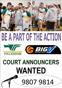 WBA are looking for game day staff for our Waverley Falcons home games. We are specifically recruiting Court Announcers, who play a big role in bringing the excitment of the game to spectators watching in person and online.