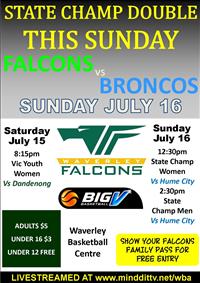 This weekend will also be the last chance to catch the Vic Youth Champ Women, who take on the Dandenong Rangers at the Falcon Nest on Saturday Night. This year has seen a marked improvement in the Youth Women's results, and while this is a tough ask to finish the season, hopefully they can make a good run at it in front of their home crowd.