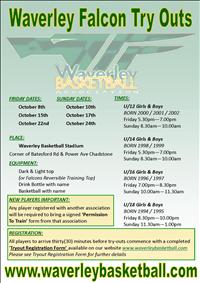 Waverley Falcon Junior Try-Outs are on again for 2010/2011