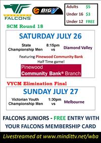 The Falcons Victorian Youth Championship Men finals campaign kicks off this weekend with an elimination final against the Melbourne Tigers.